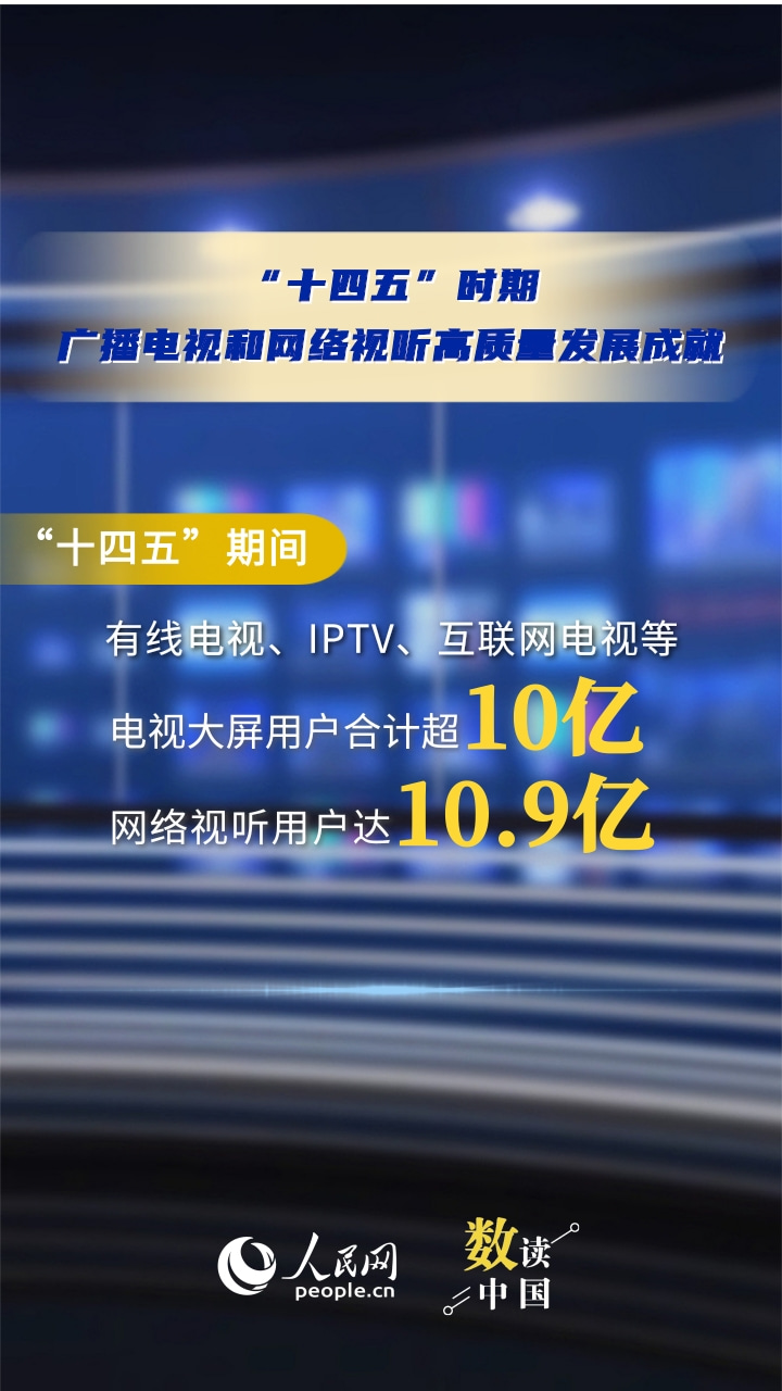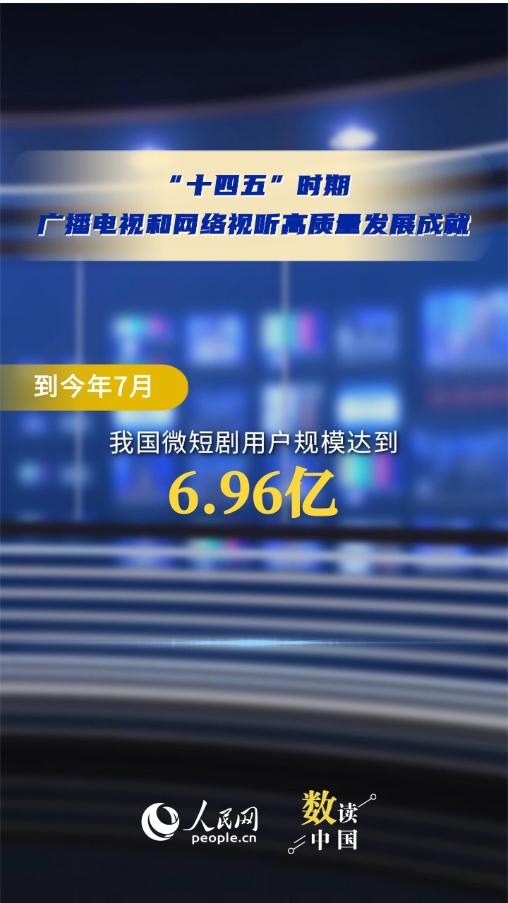电视大屏用户合计超10亿、网络视听用户达10.9亿、微短剧用户规模达6.96亿……近日,国新办举行新闻发布会介绍,我国在用户、内容、产业等规模上已经成为广播电视大国、网络视听大国。6组数据看“十四五”时期,我国广播电视和网络视听高质量发展成就。