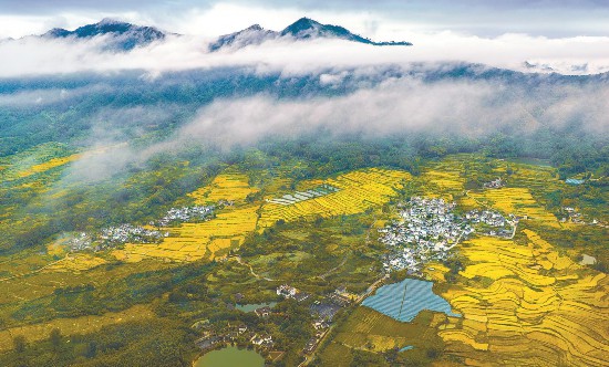9月20日,黟县碧阳镇赤岭村稻浪涌金。许晖摄