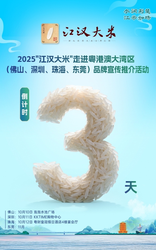 10月10日,长粒、优质、好吃的湖北靓米“江汉大米”又要来大湾区圈粉、送福利啦!——2025“江汉大米”走进粤港澳大湾区(佛山·深圳·珠海·东莞)品牌宣传推介活动即将开启。