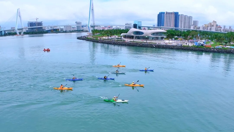 作为首次落户海口的国际海洋皮划艇赛事,本次活动为海口城市文旅体育融合发展注入强劲动能,赛事创新打造了 “国际 IP + 城市地标 + 滨海风光” 场景,推动云洞图书馆的建筑美学与碧海竞技图景深度交融,构建起 “可观赏、可打卡、可体验” 的文体旅消费新空间。
