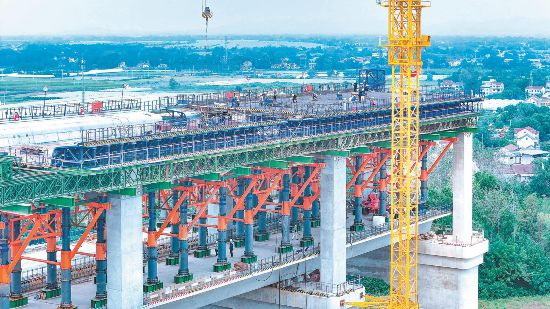 10月5日,池州长江公铁大桥项目北引桥首片公路梁浇筑完成。国庆中秋假期,600多名施工人员奋战在一线,确保工程顺利推进。