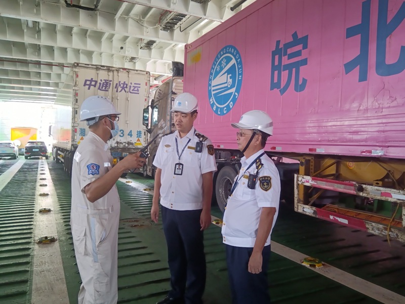 据介绍,海口海事局通过强化监管,增派执法力量和海事巡逻船艇,对航道设施、码头缆桩、乘客廊桥等关键设备进行全面评估,保障船舶靠泊、旅客车辆登乘安全。重点对船舶适航性、船员适任性、车辆绑扎系固、危险品查堵等关键环节进行严格检查,利用VTS、智慧海事等信息化手段进行全航程监管,确保船舶航行安全。