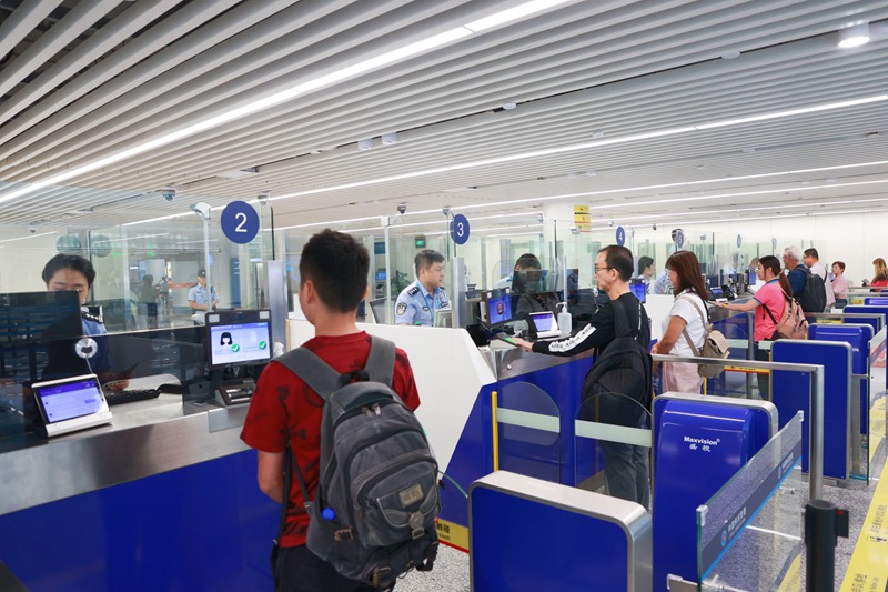 美兰边检站迎来出入境客流高峰。陈奕樽摄