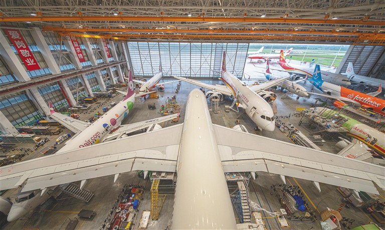 在这里,我听到了首单进境飞机维修时令人兴奋的创业故事,看到了停机坪上多国航司飞机“排队”入库的壮观景象,更从扎堆而来的境外客户代表竖起的大拇指里,读懂了“放心之地”背后的分量和引力。