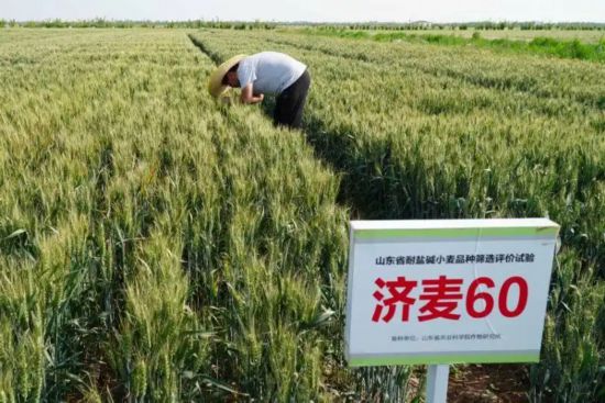 “济麦60”正是山东省农科院作物研究所育成的抗旱节水小麦新品种,适合在中度盐碱地大范围种植。位于垦利区永安镇的山东丰彩种业有限公司多年前开始试种,今年夏收期间测产显示,在含盐量3.01‰的中度盐碱地上,亩产达到了560.4公斤,比去年增产了近50公斤。