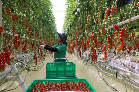 在包装车间,工人秦帅正穿着洁净服分拣番茄。他之前在县城蛋糕店做前台,月收入不到3000元。来到示范园后,他不仅离家更近,收入也大幅提升。“我们是计件工资,干得多拿得多,现在平均每天能挣300元左右。”秦帅笑着说。像秦帅这样“回流”本地就业的村民不在少数。凤凰城街道一级主任科员武艳军介绍,示范园通过“龙头企业+基地+农户”的模式,已带动周边200多名村民实现“家门口就业”,人均年增收6万元。“过去农民种地靠天,收入不稳定。现在园区提供稳定岗位,还教技术,让大家真正实现了‘离土不离乡、就业又增收’。”武艳军说。