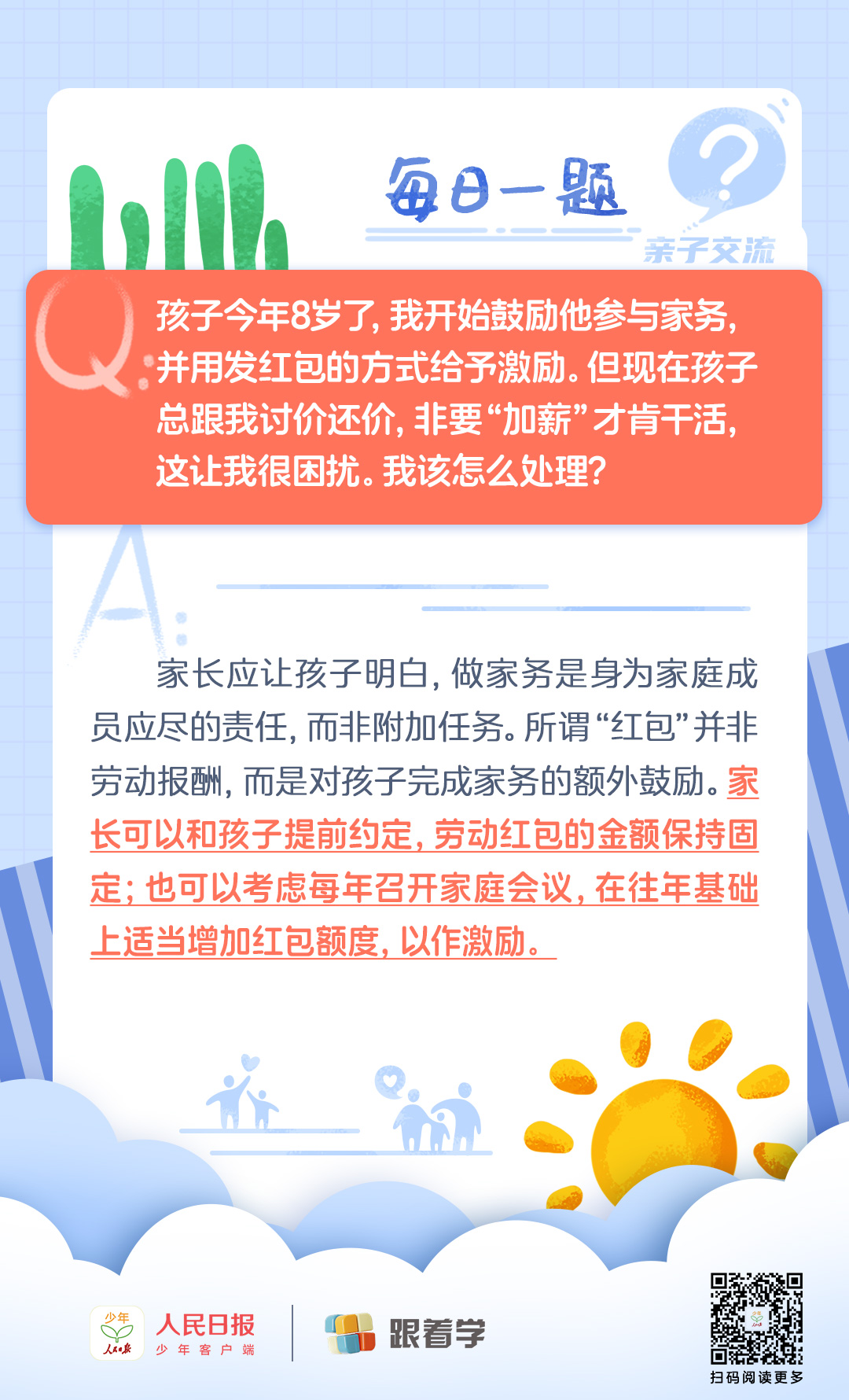 每日一题丨用红包鼓励孩子做家务导致他讨价还