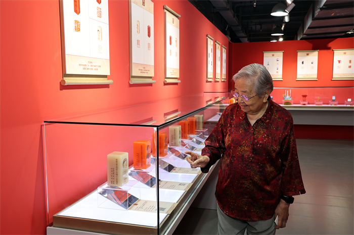 上海巡展特设的“光耀申城”展区尤为丰富,“崧泽古文化遗址”“朱家角古镇”“豫园”等印章连接上海文脉,“海关大楼”“石库门”“上海总工会”等印记铭刻红色记忆,“上海外滩”“陆家嘴”“上海中心”“进博会”等作品则展现新时代上海的非凡成就。